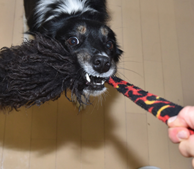 この習性があるので、「オモチャをくわえる」「引っ張り合いっこする」ことに、犬は強い意欲を示します。結果、ハンドラーとの「やりとり」から絆を高めることになります。